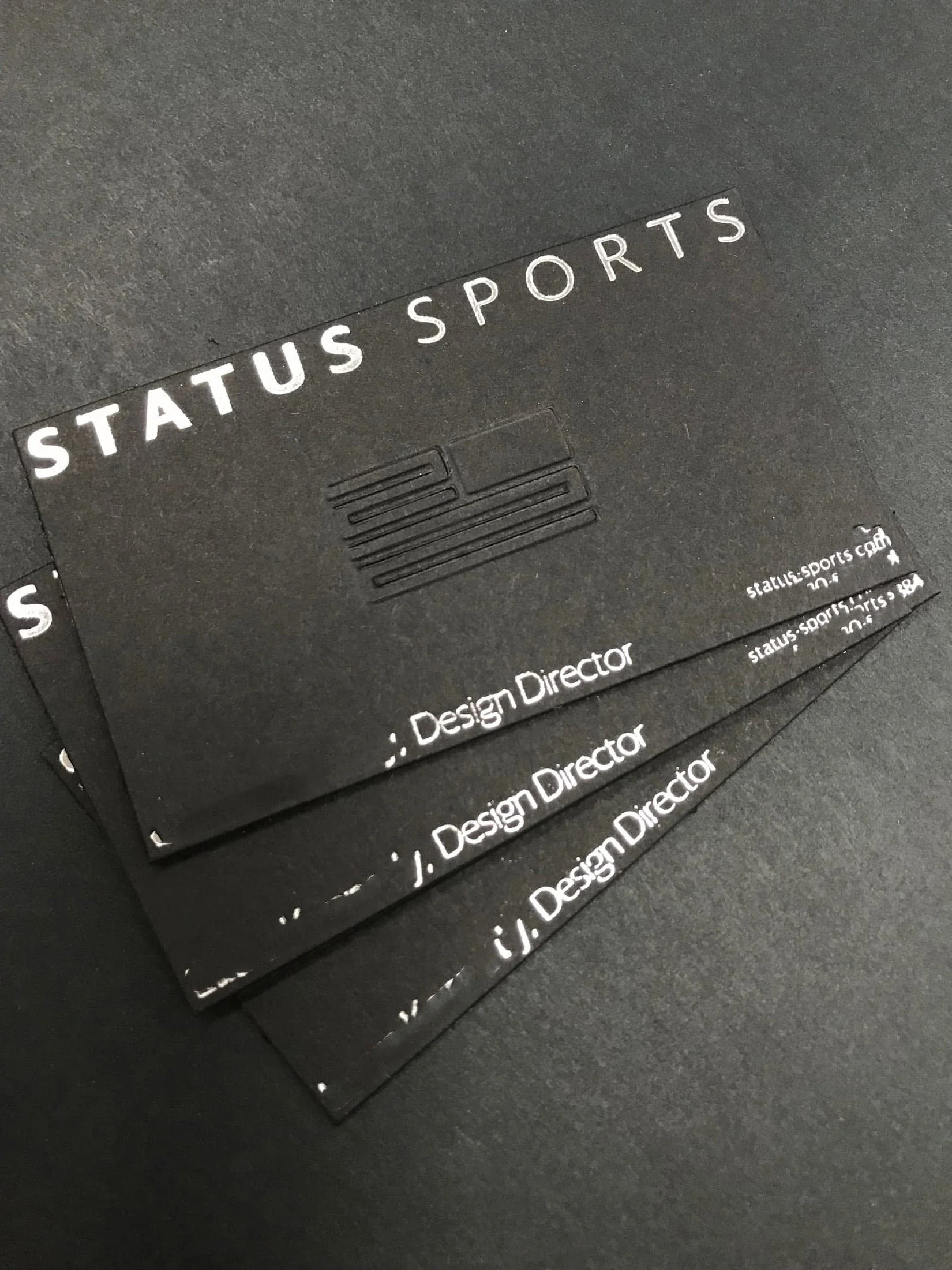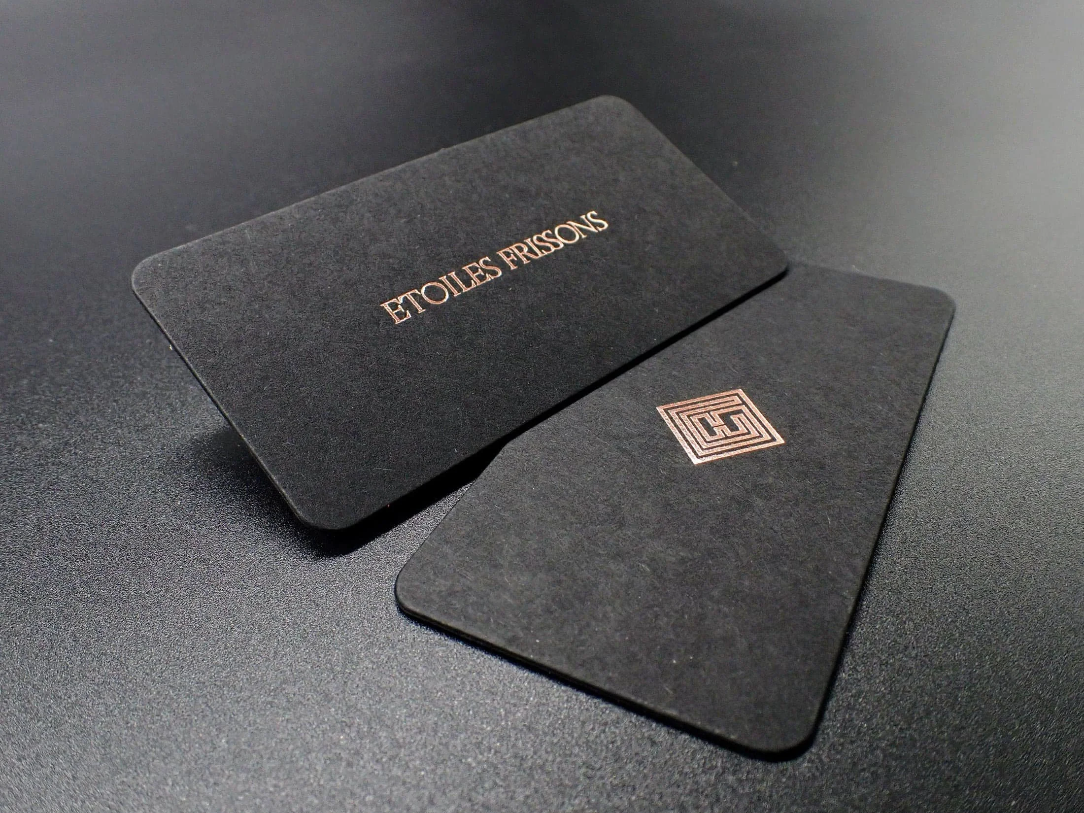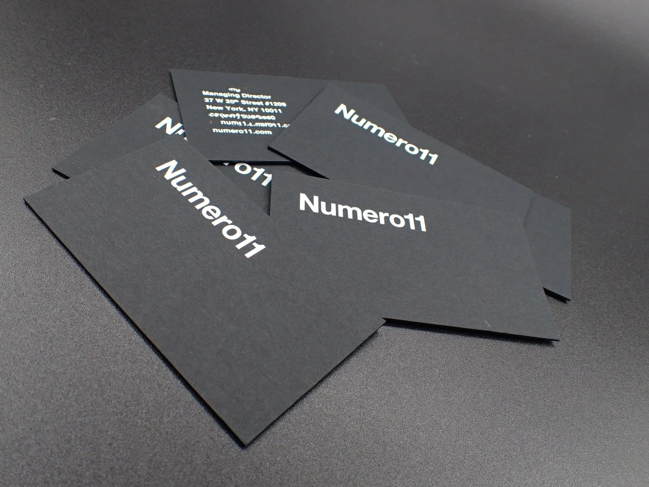 Black paper business cards are built around precision and first impression. High-gloss white foil, holographic effects, and extra thickness create clarity and structure, producing cards that feel deliberate, balanced, and highly detailed.