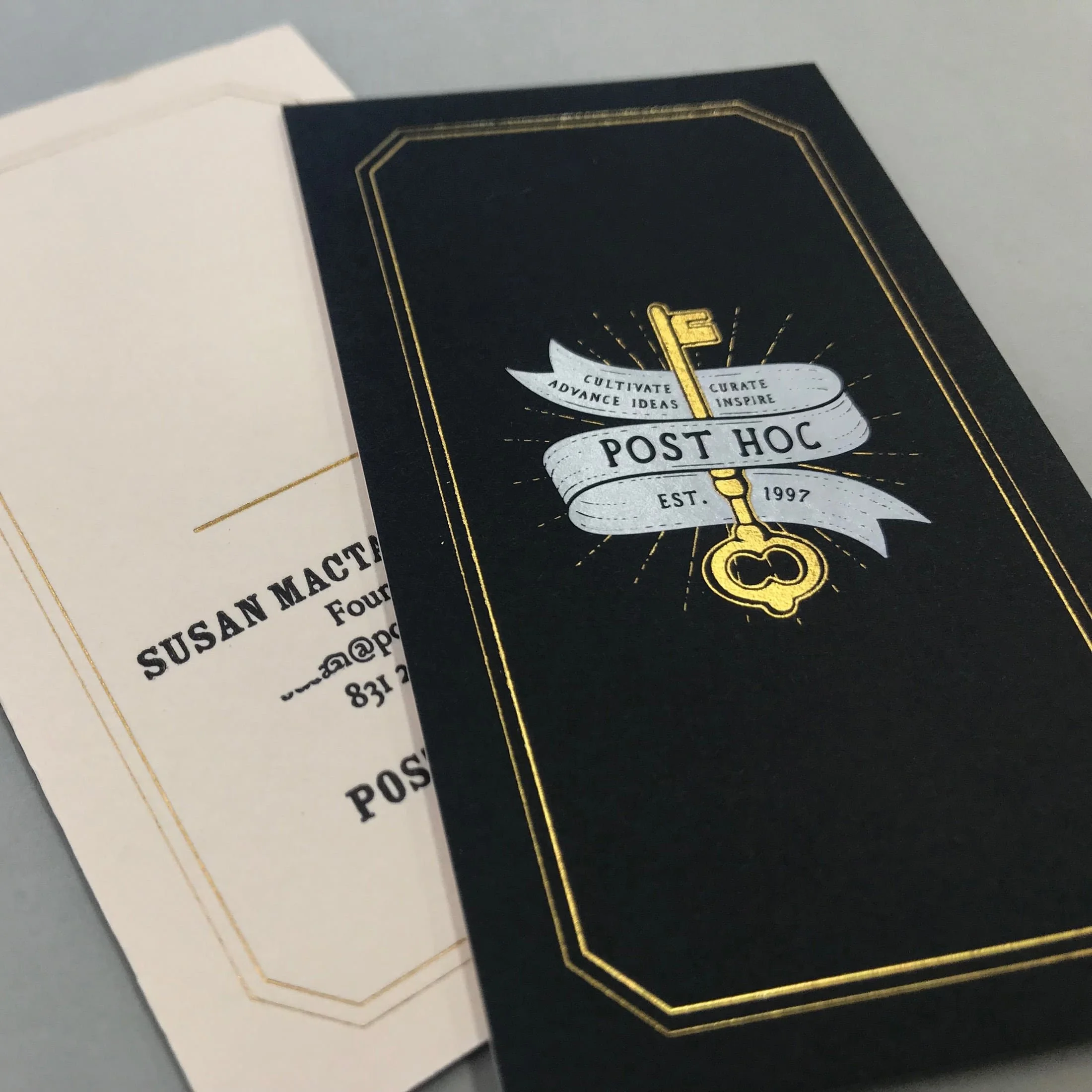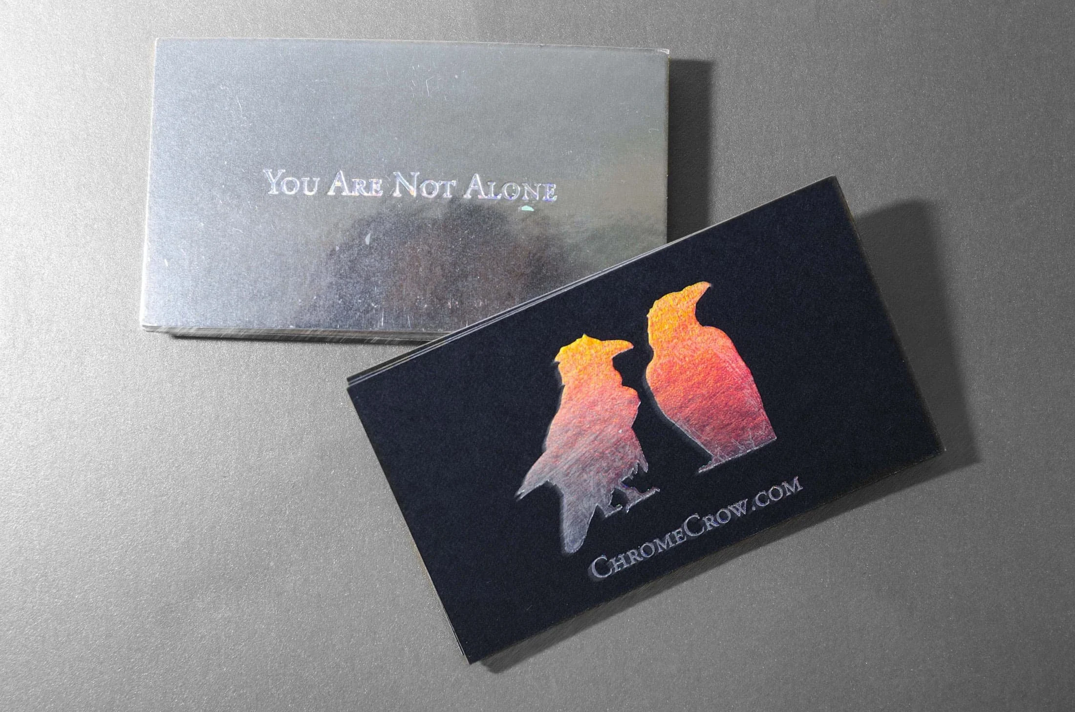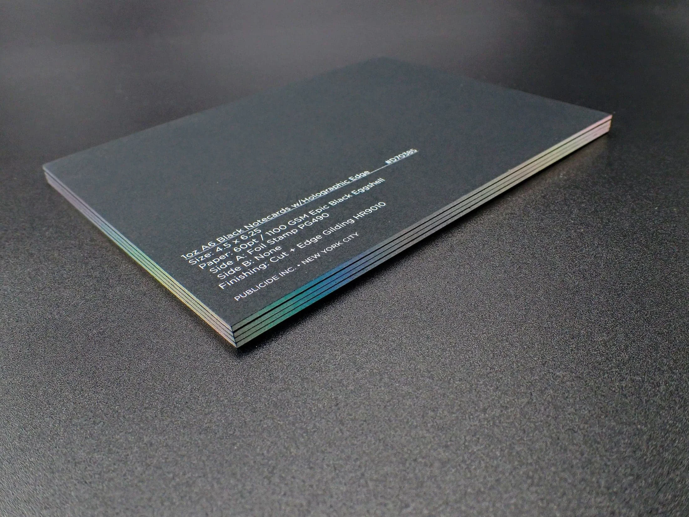 Black paper business cards are built around precision and first impression. High-gloss white foil, holographic effects, and extra thickness create clarity and structure, producing cards that feel deliberate, balanced, and highly detailed.