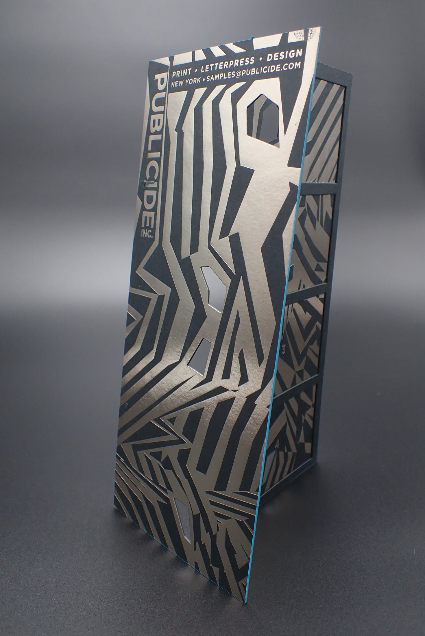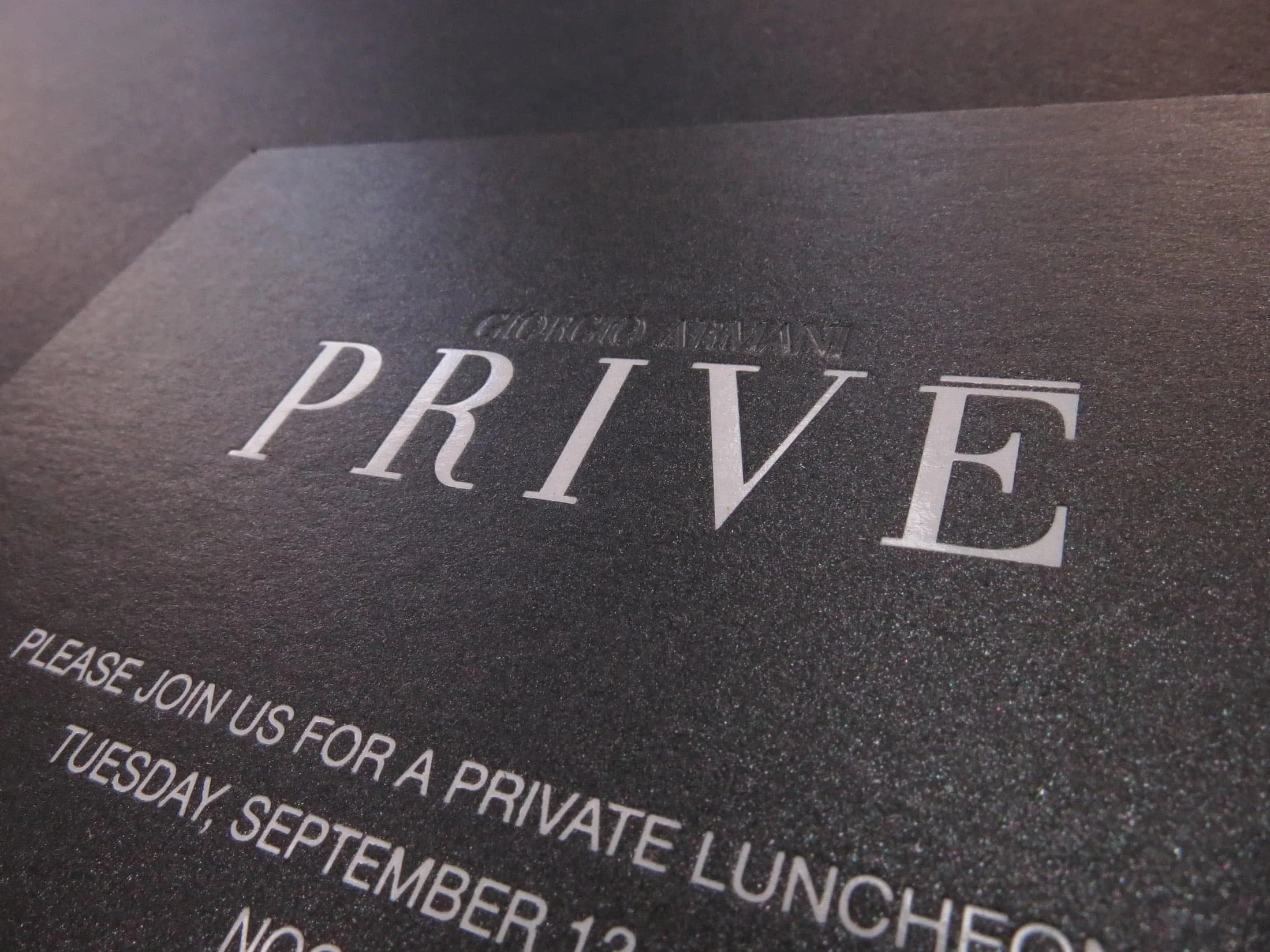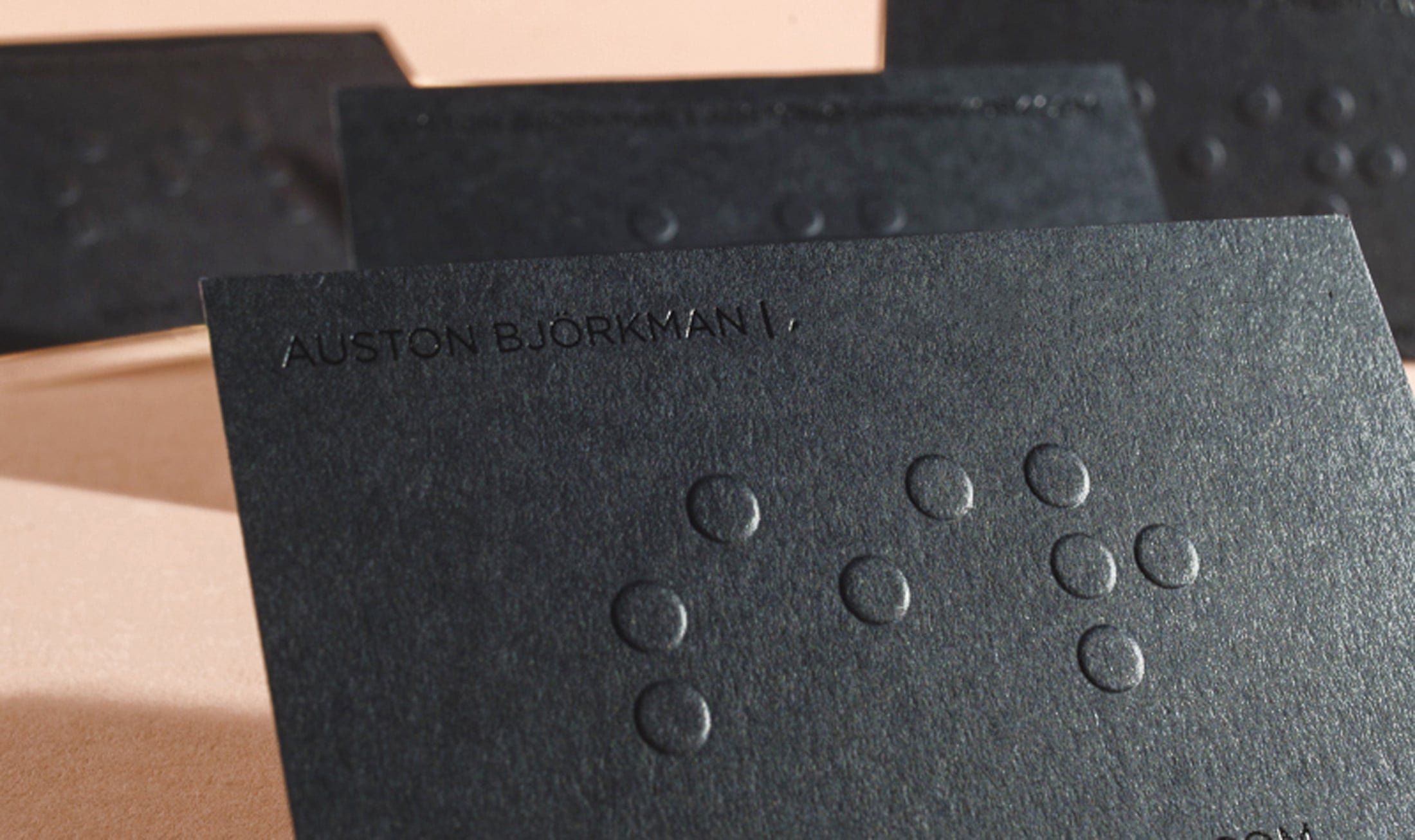 Embossing and debossing shape the surface of black paper, introducing depth without relying on ink. The result is a tactile, dimensional finish defined by light and shadow.