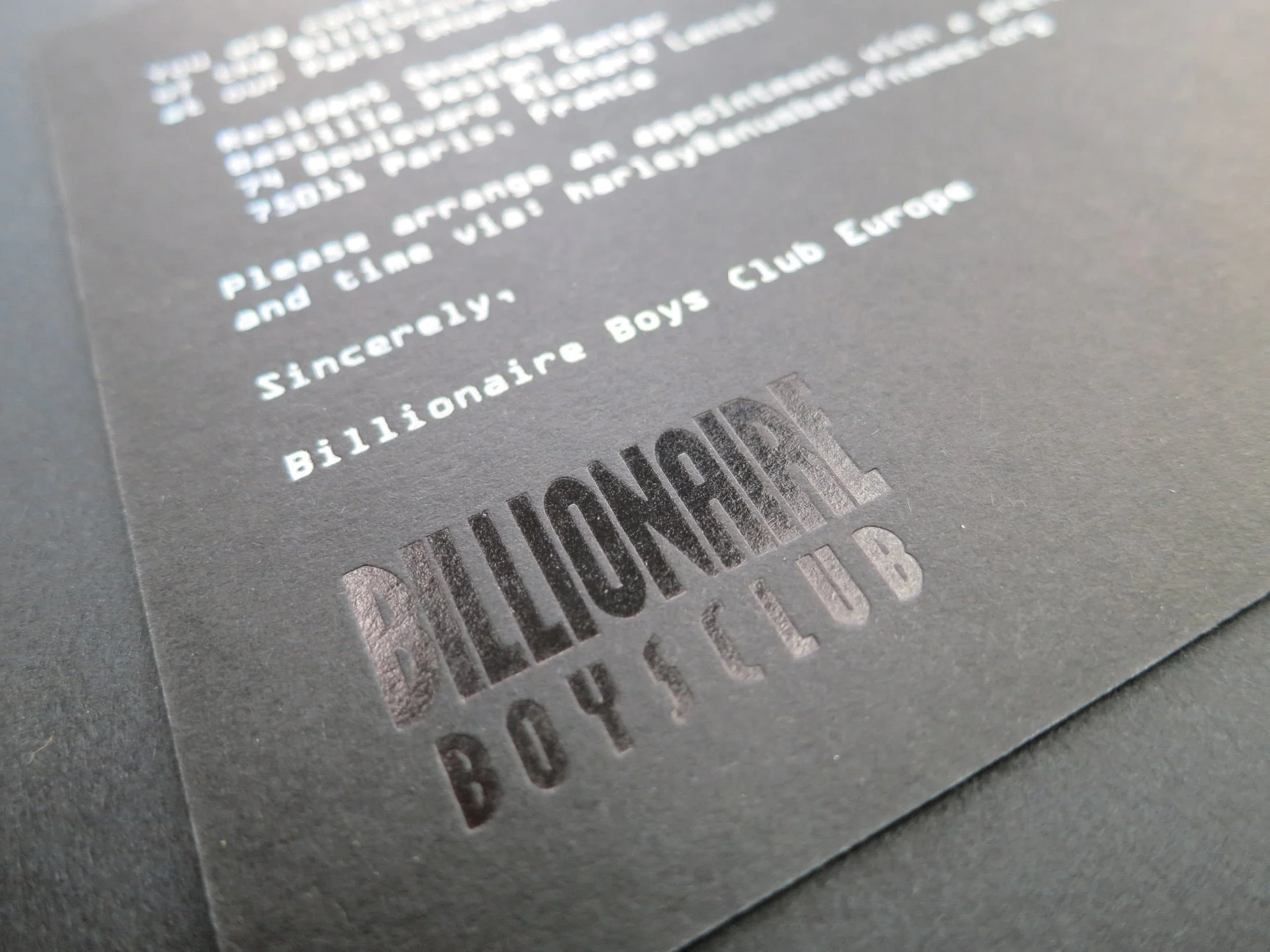 Printing on black paper requires specialized techniques to achieve sharp contrast and clean detail. Standard inks disappear into dark stocks, so processes like white ink printing, foil stamping, and embossing are used to bring designs forward with clarity and precision.